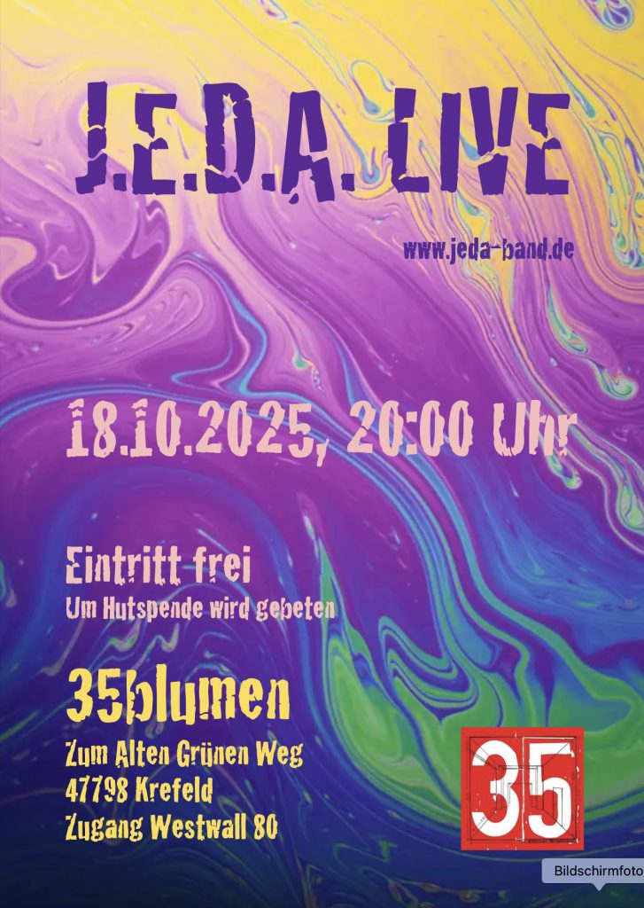 Kommendes Konzert: 18.10.2025. 20:00. J.E.D.A.
